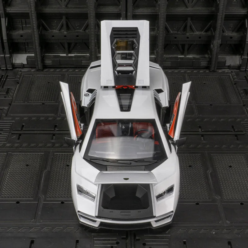 Model posiada otwierane drzwi, maskę i bagażnik, a jego realistyczne wnętrze i dynamiczne linie nadwozia zachwycają precyzją wykonania. Doskonale prezentuje się w kolekcji supersamochodów lub jako efektowny element wystroju.